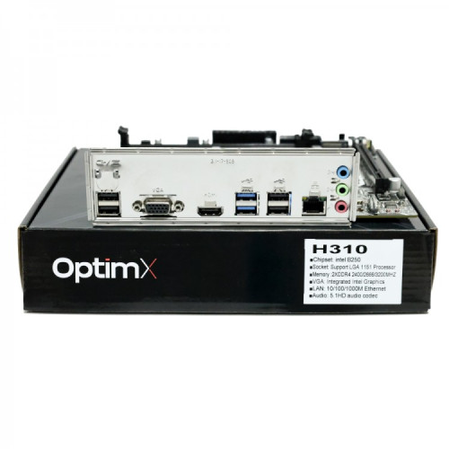 Placa de baza OptimX Pro H310, TMP 2.0, Socket 1151, compatibila cu procesoare Intel Gen 6/7/8/9 , DDR4