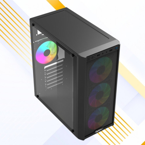 OptimX Prime 3 – Carcasa ATX cu Design Premium, Sticlă Temperată și 4 Ventilatoare RGB instalate