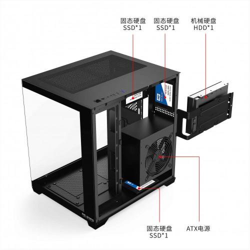 Carcasa Noua Pro Gaming Ambra Black Cube, Middle Tower, ATX, Fara Sursa, 5x Fan ARGB, Controller ARGB, Telecomanda