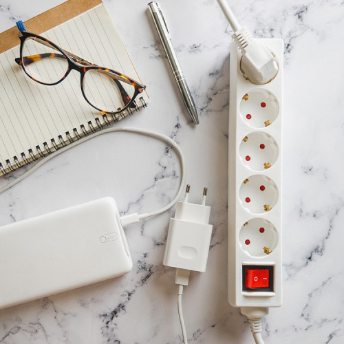 Prelungitor Spacer PP-5-30, Schuko x 5, cablu 3m, 16A, protectie copii, alb