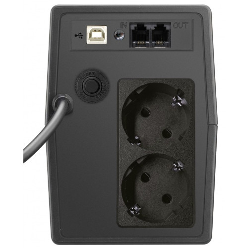 Caracteristici / FacilitatiCapacitate: 600 VA / 360 W UPS line interactive cu management prin port USB Control eficient al microprocesorului AVR pentru stabilizarea tensiunii (Boost and Buck) Repornire automata la revenirea curentului in retea Forma de unda (Mod Baterie): Unda sinusoidala simulata Incarcare in modul oprit Tip baterie si numarul bateriilor incluse: 12 V / 7 Ah x1 Functie de pornire la rece Autonomie de backup: 19 minute la 25% sarcina, 6 minute la 50% sarcina, Nu se recomanda utilizarea la 100% sarcina pe termen lung. Interfata: – Retea: cablu de alimentare Schuko – LCD – Conectori de iesire: Schuko x 2 – USB x 1 – Conector telefon/retea: RJ11/ RJ45. Dimensiuni compacte (D x W x H): 300 x 101 x 142 mm Greutate: 4.4 kg. Bateria are 12 luni garantie